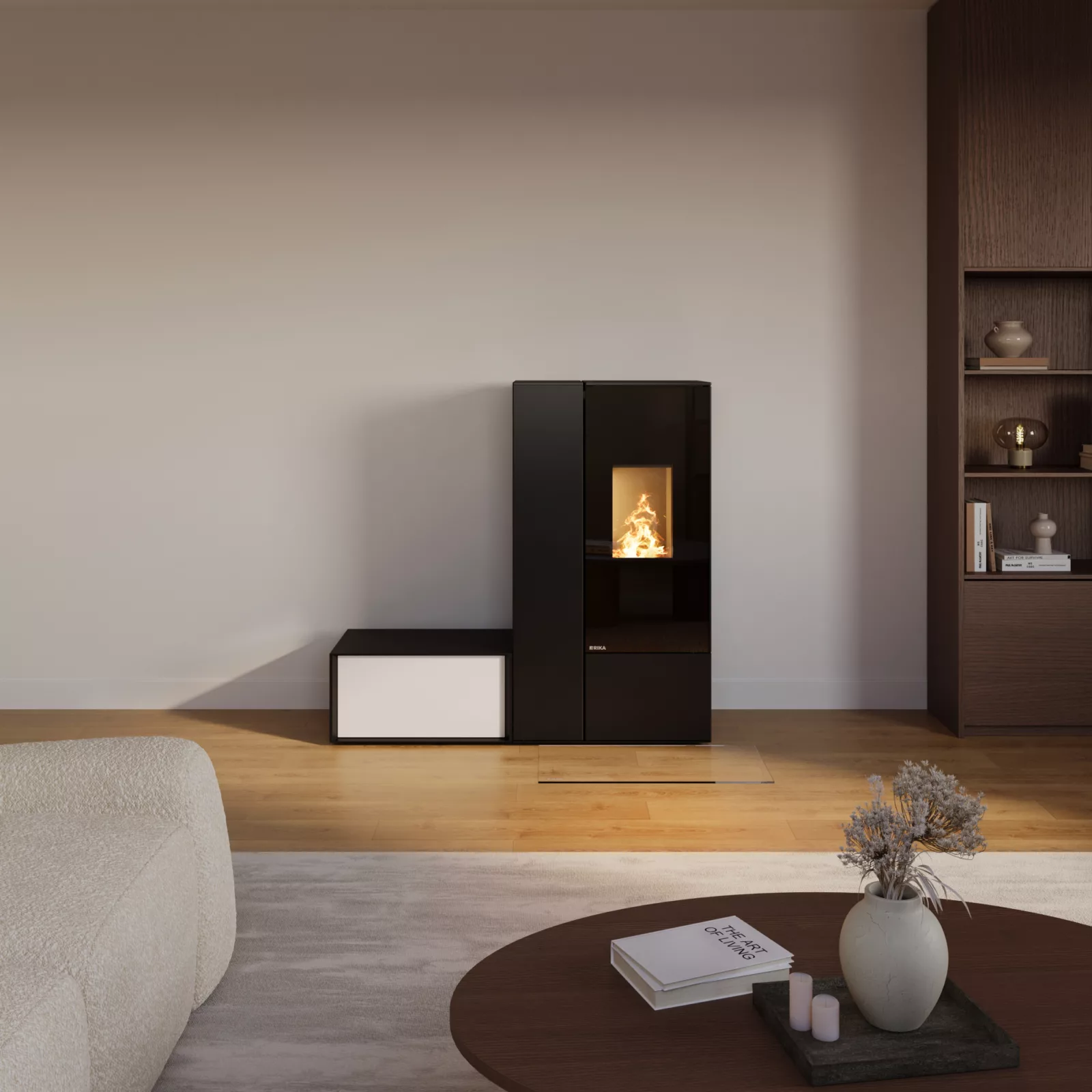 Unterschiedliche Formen und Funktionen, Materialien und Oberflächen der einzelnen Ofen-Module ermöglichen eine ganzheitliche Wohnraumgestaltung, die das Feuer umso wirkungsvoller in den Mittelpunkt stellt.