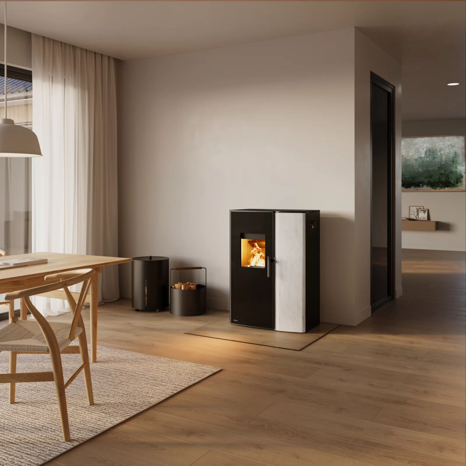 Der Kombiofen PARO vereint die Vorteile eines Kaminofens mit jenen eines Pelletofens und gibt dabei auch optisch eine sehr gute Figur ab. Kombiniert man nun noch eine besonders hohe Bedienfreundlichkeit mit einer automatischen Zündung, bleiben keine Wünsche offen. Der Ofen verfügt über eine Speichermasse von 65 kg und ist in einem Leistungsbereich von 2.5 bis 8.0 kW erhältlich. Der raumluftunabhängige Kombiofen verfügt zudem über einen Pelletbehälter mit einem Fassungsvermögen von bis zu 30 kg.
